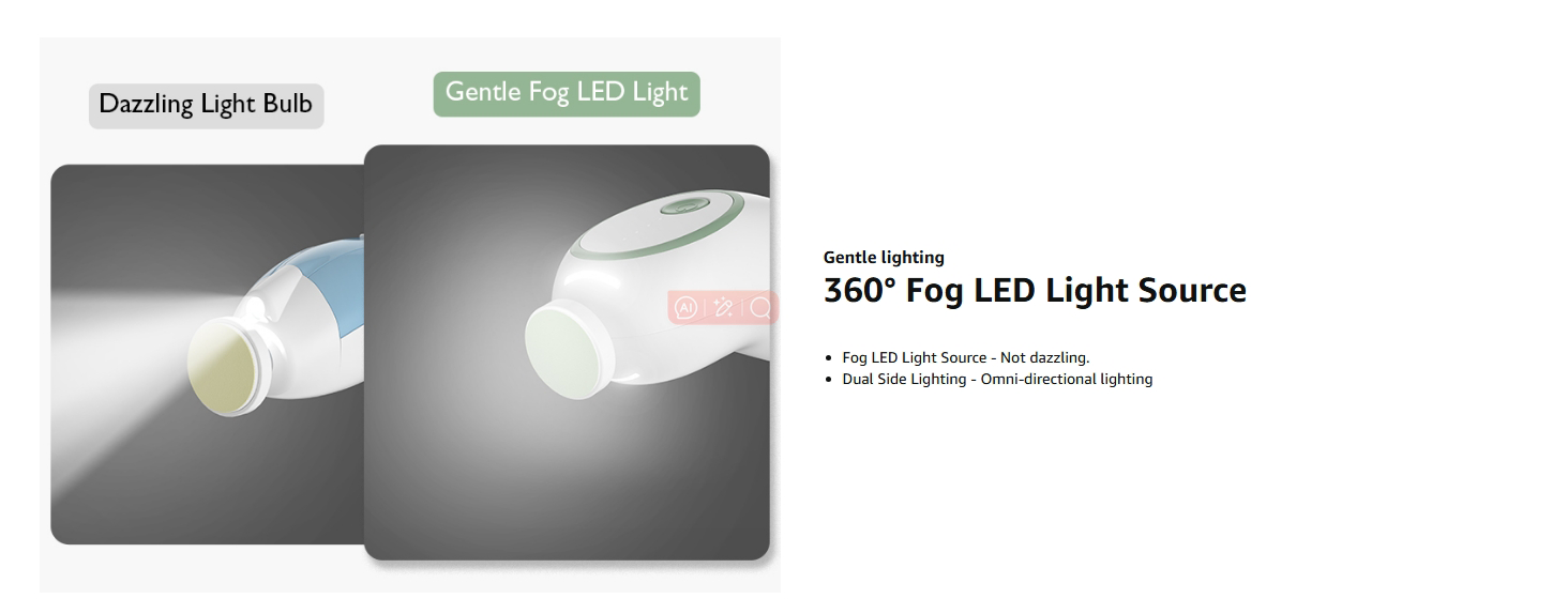 • Equipped with a 360° fog LED light for clear, glare-free nail grooming at night.