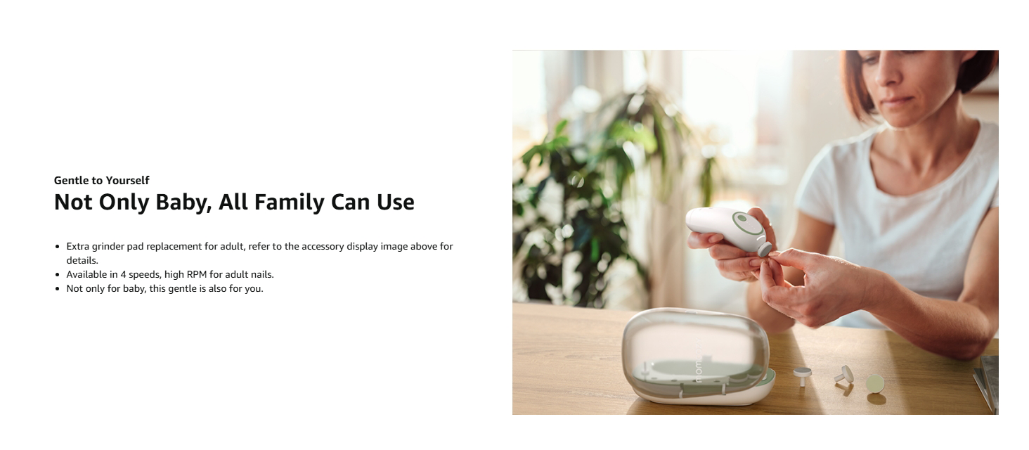 My baby isn't here yet, so I've been testing it on myself. It works wonderfully. Doesn't need a lot of pressure to file my nails down, and the colour gradient makes it easy to remember what age group it's for. The manual mentions the recommended speed for each colour, so I've made my own "I'm too lazy to read the manual" chart. It'll be handy when sleep-deprived and not willing to read the small font on the manual. My only issue is that the lid doesn't close properly, but the product itself is what's important. Thank you for a wonderful product!