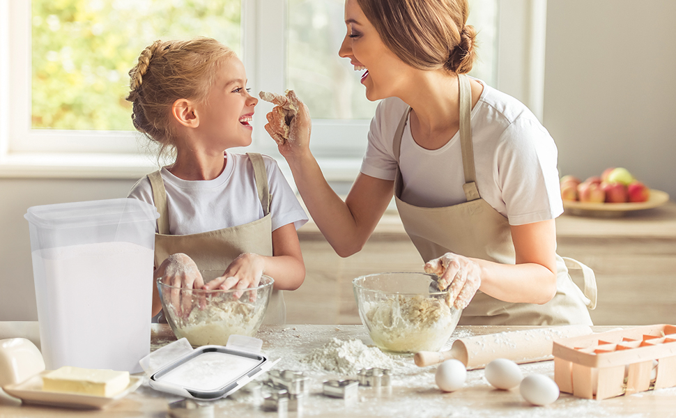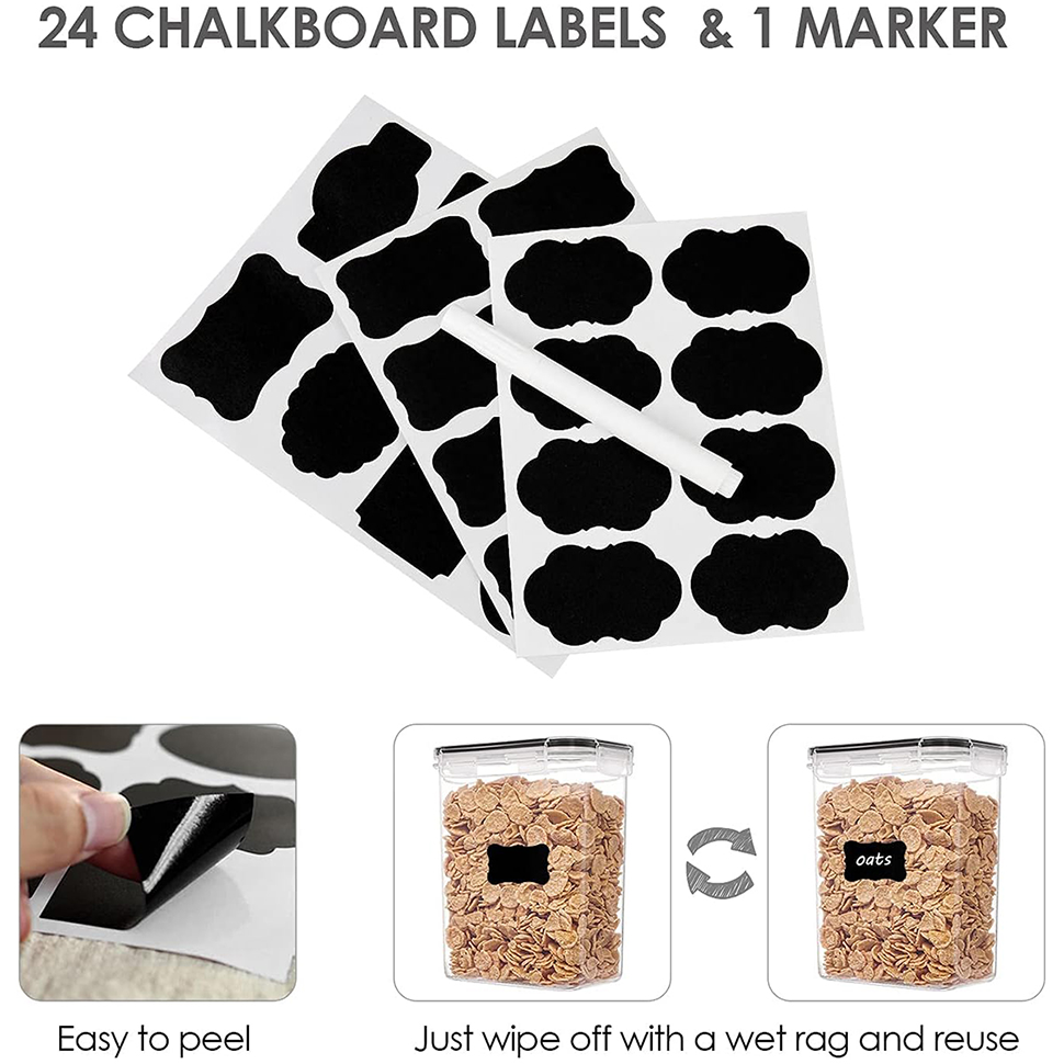 - The set includes 6 Tall (2.5qt), 6 Large (1.8qt), 6 Medium (1.5qt), and 6 Small (0.7qt) containers, perfect for storing dry goods like pasta, cereal, flour, and sugar.