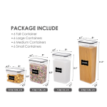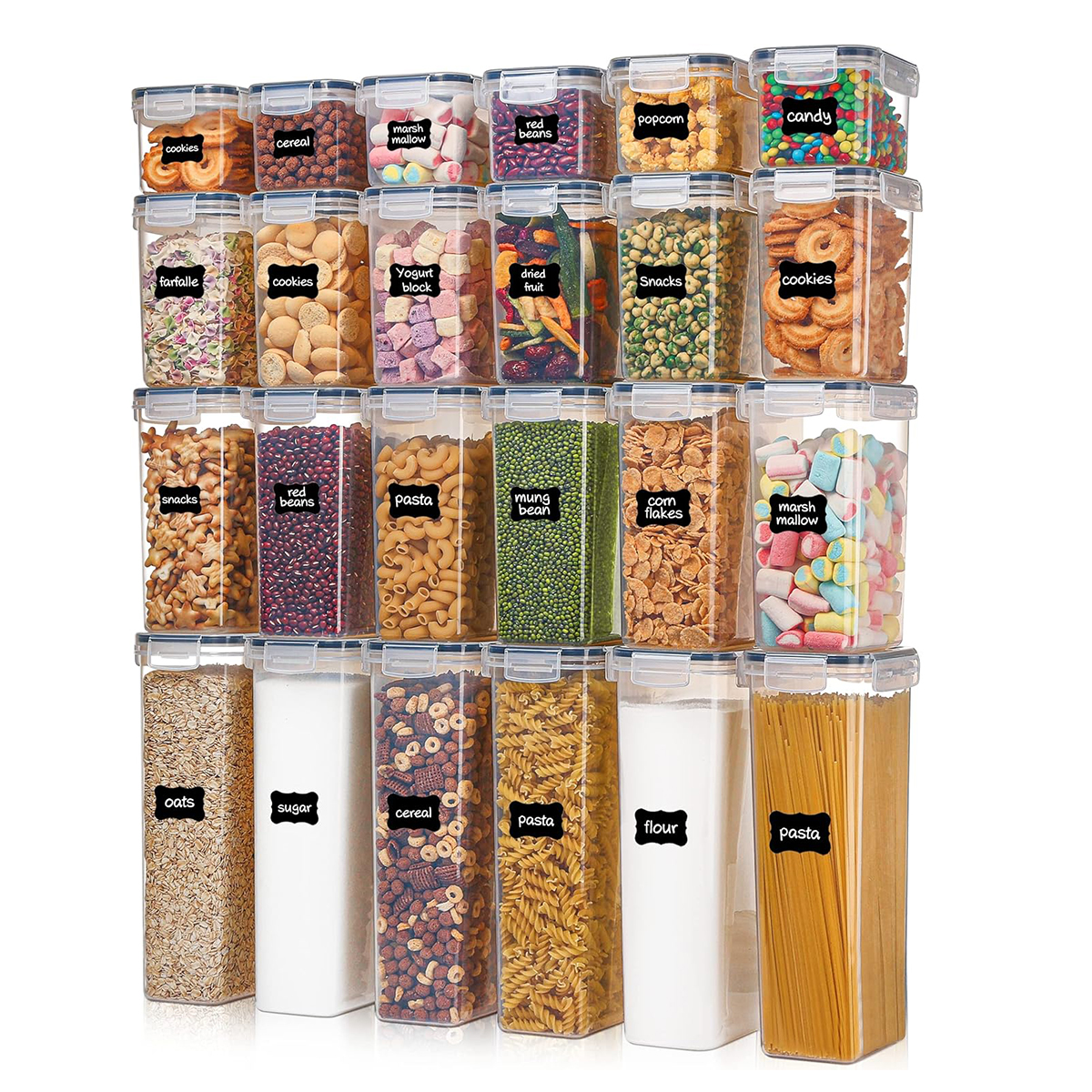 - The set includes 6 Tall (2.5qt), 6 Large (1.8qt), 6 Medium (1.5qt), and 6 Small (0.7qt) containers, perfect for storing dry goods like pasta, cereal, flour, and sugar.