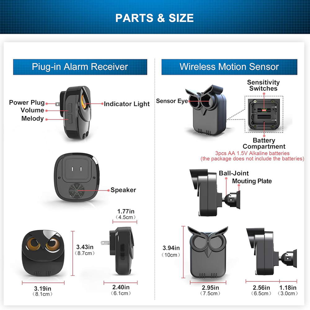 - Powered by 3 AA batteries (not included), simply plug the receiver into an outlet. Sensors can be installed on walls, fence posts, or trees, with quick and easy setup.