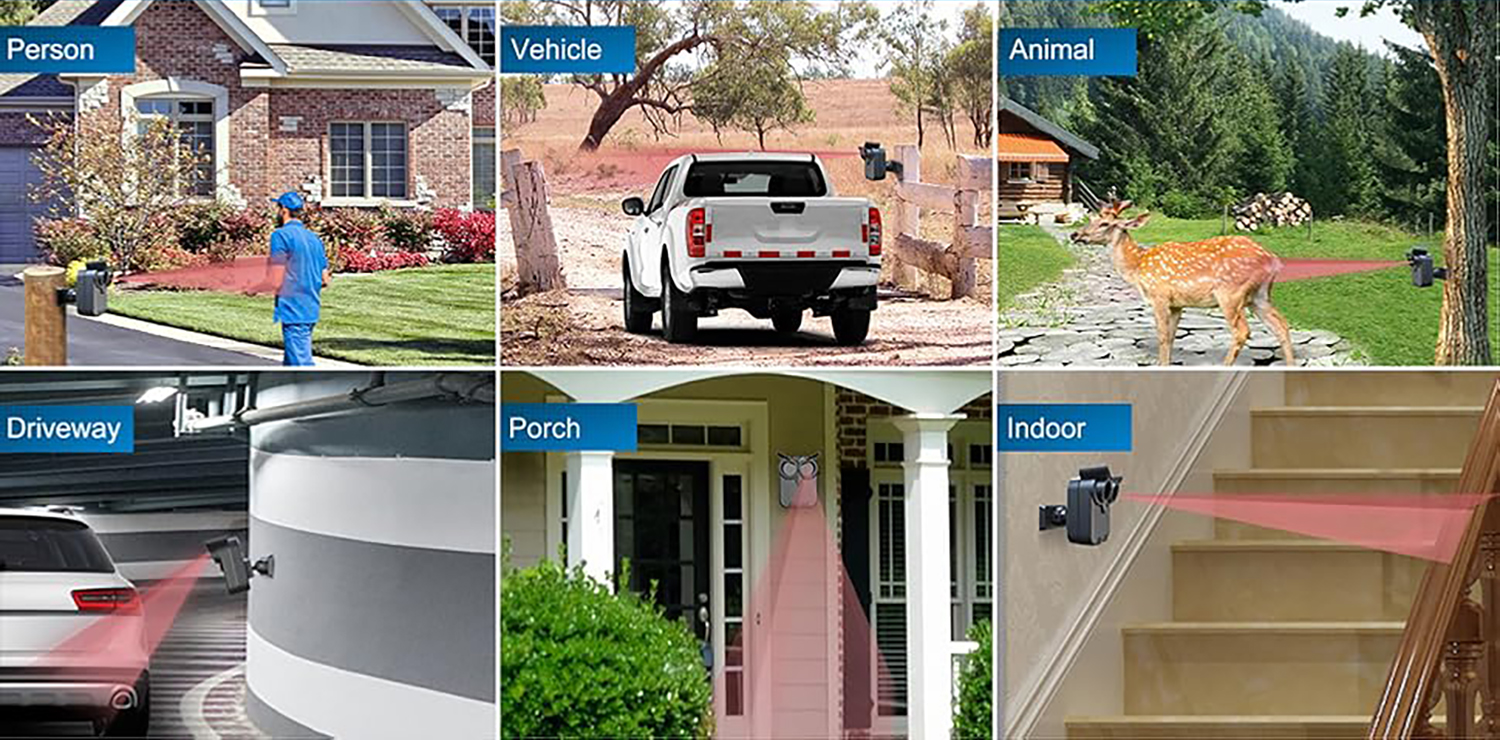 - The weather-resistant wireless motion sensor is suitable for monitoring driveways, front porches, gates, pools, and other indoor and outdoor areas.